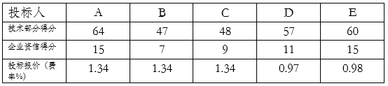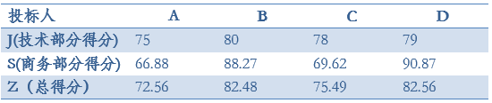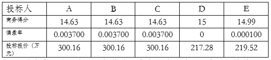 此项目商务部分的分数由某公司开发的软件进行计算,其计算结果如下表(为便于比较,下表内列入了监理费):表6